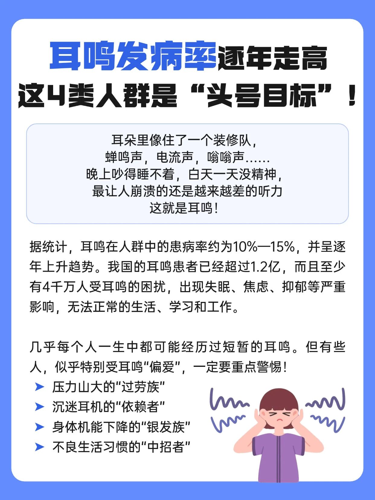 但如果耳鸣持续时间长(超过几天),或者伴有听力下降、眩晕、头痛等症状,及时就医,别硬扛!愿大家都能拥有“耳根清净”的好日子!