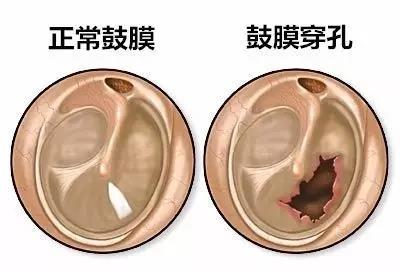 鼓膜穿孔后,中耳腔与外界直接相通,极易因外界刺激诱发炎症: