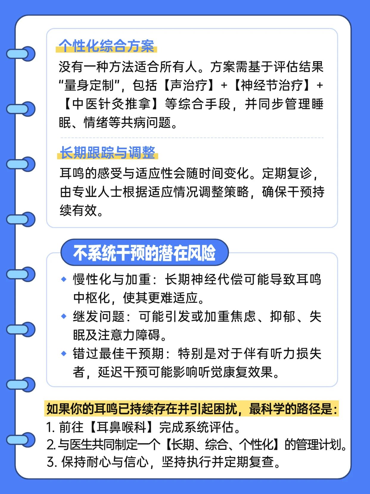 耳鸣让你辛苦了这么久,是时候给自己一个集中、高效、有支持的治疗机会了。如果你或家人正被耳鸣困扰,不妨到耳鸣专病门诊听听专家团队的评估。有时候,解决问题的钥匙,就在你愿意停下来、住进去的那一刻!
